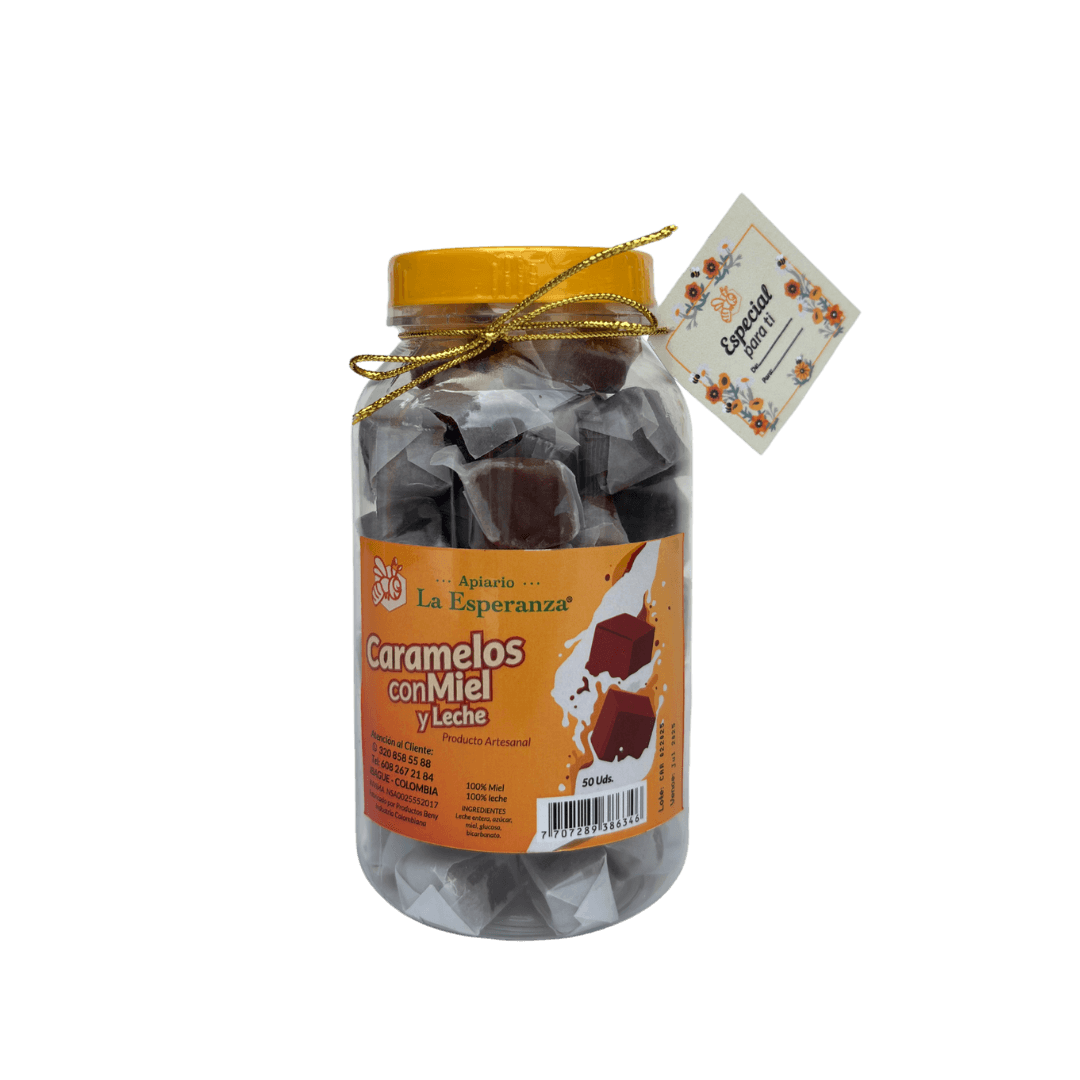 Ya sea que estés buscando un regalo especial o quieras disfrutar de un momento de dulzura diaria, los caramelos de miel con leche en frasco PET son la elección perfecta. Añádelos a tu carrito y llévate la esencia de la tradición apícola colombiana en cada bocado.